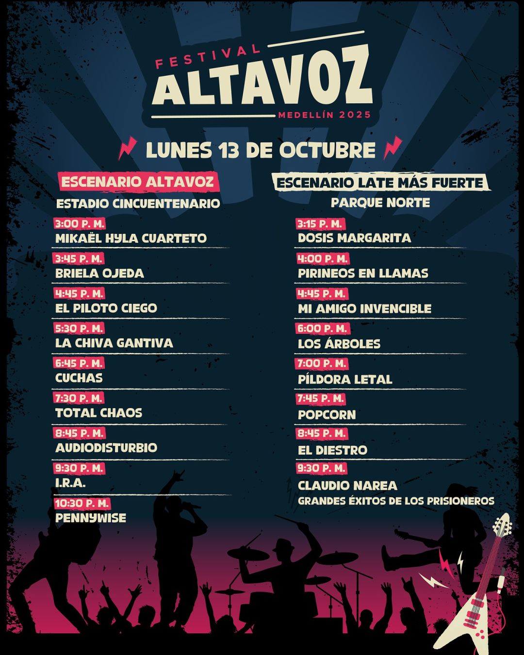 En Medellín, la música vibra como el pulso de la ciudad, y el Festival Altavoz 2025 es quien lo amplifica. Un encuentro que celebra la diversidad sonora, desde las propuestas emergentes hasta las bandas consolidadas, creando un espacio donde arte, cultura y comunidad se funden en una misma voz. Altavoz es el eco de nuestras calles, el reflejo de nuestra energía y la fiesta que nos une a través de la música.