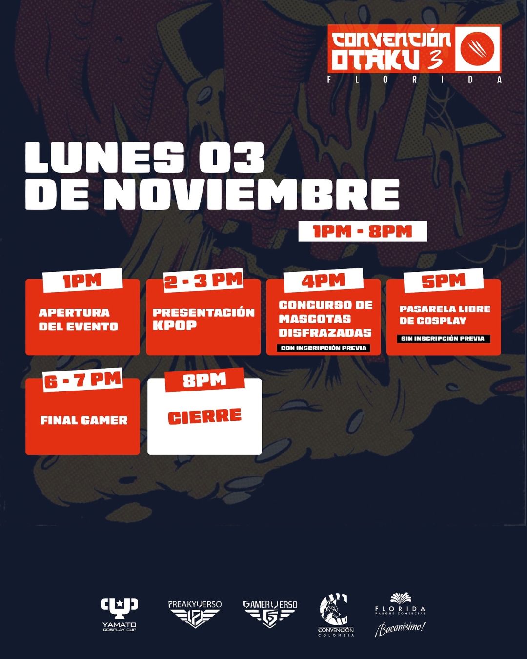 ¡El multiverso otaku cobra vida en Florida Parque Comercial! Llega la Convención Otaku 3, el evento más esperado por los fans del anime, el manga, el cosplay, los videojuegos y la cultura geek. Durante 5 días vivirás una experiencia épica con actividades para todos los gustos: concursos de cosplay, zonas gamer, torneos, shows en vivo, experiencias inmersivas, tiendas friki, artistas invitados, proyecciones y mucho más.