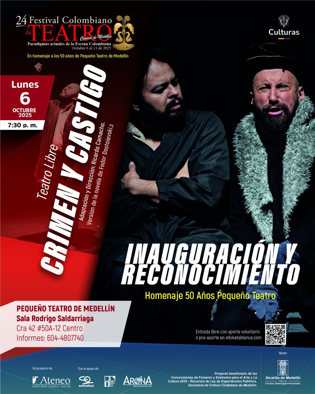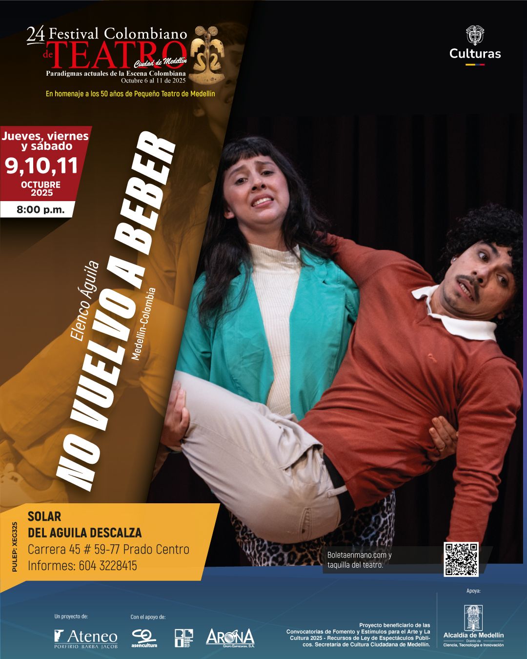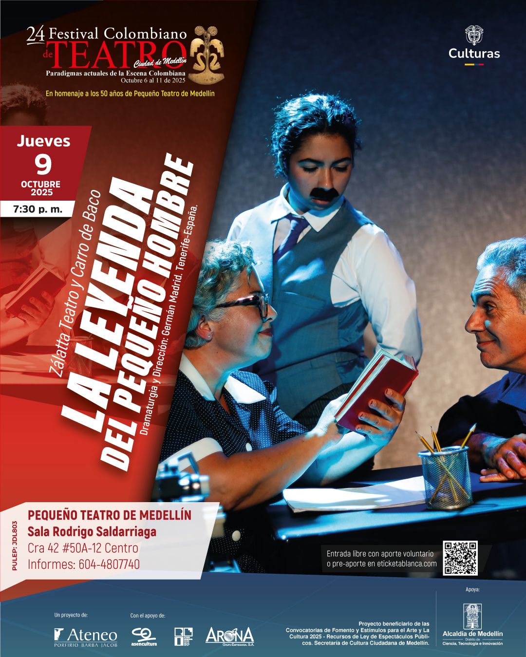 El 24.º Festival Colombiano de Teatro Ciudad de Medellín Festival Colombiano de Teatro Ciudad de Medellín celebra los Paradigmas actuales de la escena colombiana, reuniendo durante seis días lo mejor del teatro nacional e internacional. Este año es especial: rendimos homenaje a los 50 años del Pequeño Teatro de Medellín, una institución esencial en la vida artística y cultural del país.