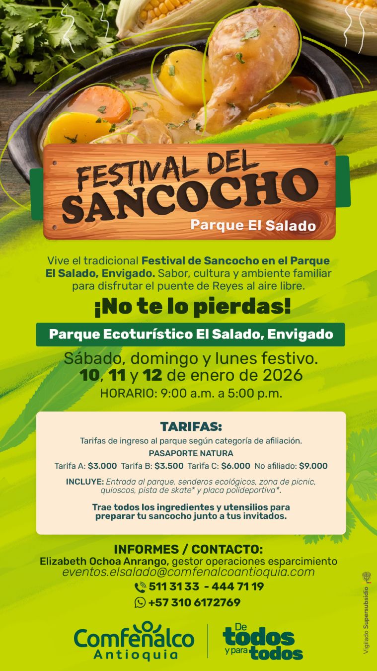 El Festival del Sancocho regresa para abrir el año al calor del fuego y los sabores tradicionales. Durante el puente de Reyes, Comfenalco Antioquia te invita a vivir uno de los encuentros familiares más esperados: el Festival del Sancocho, una celebración que en 2026 cumple 23 años honrando nuestra identidad cultural y el placer de cocinar al aire libre.