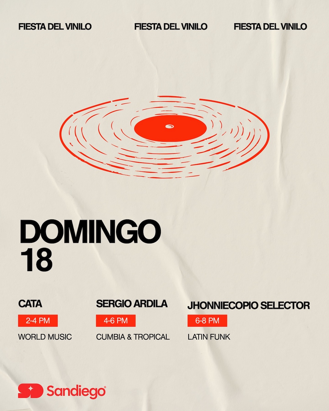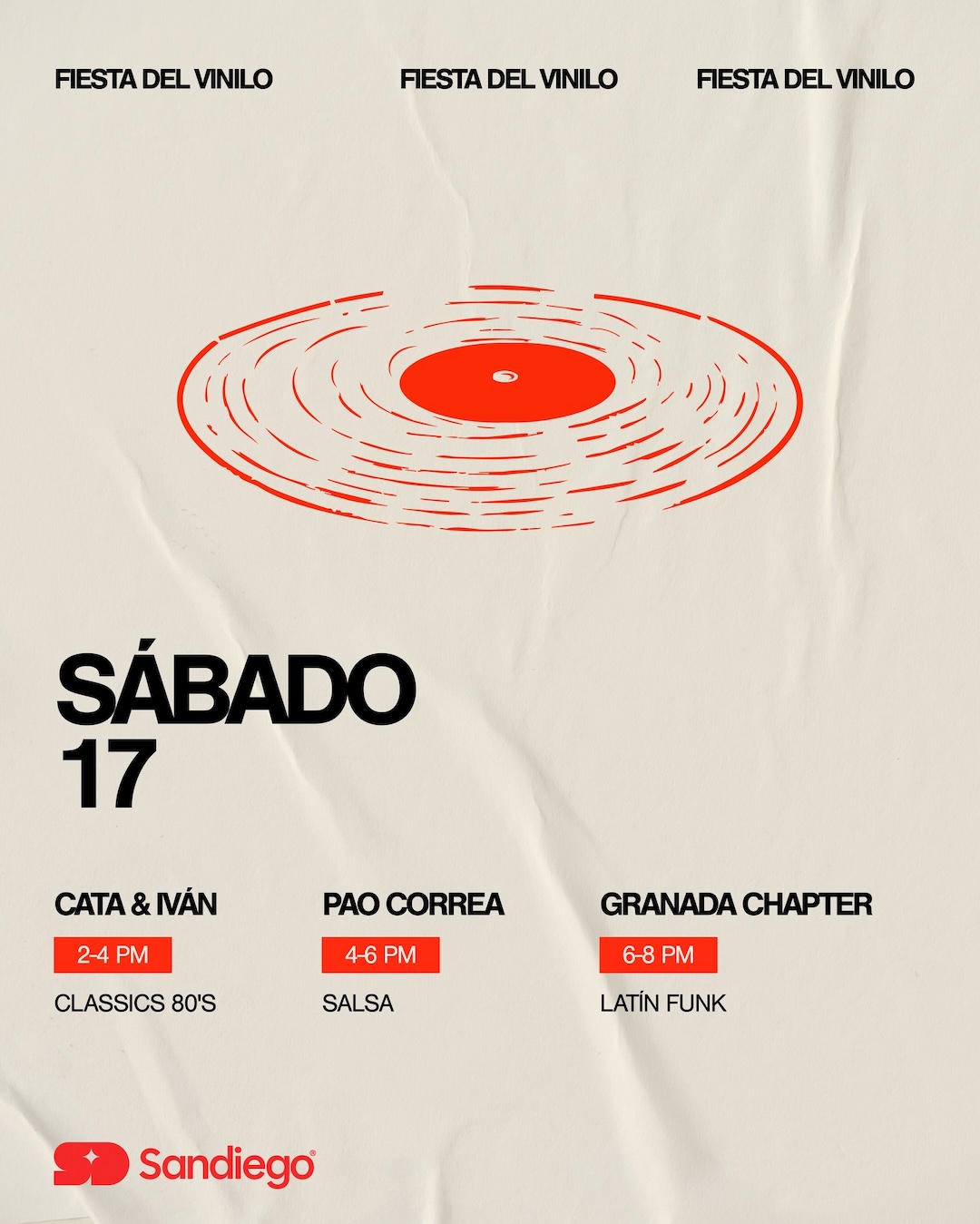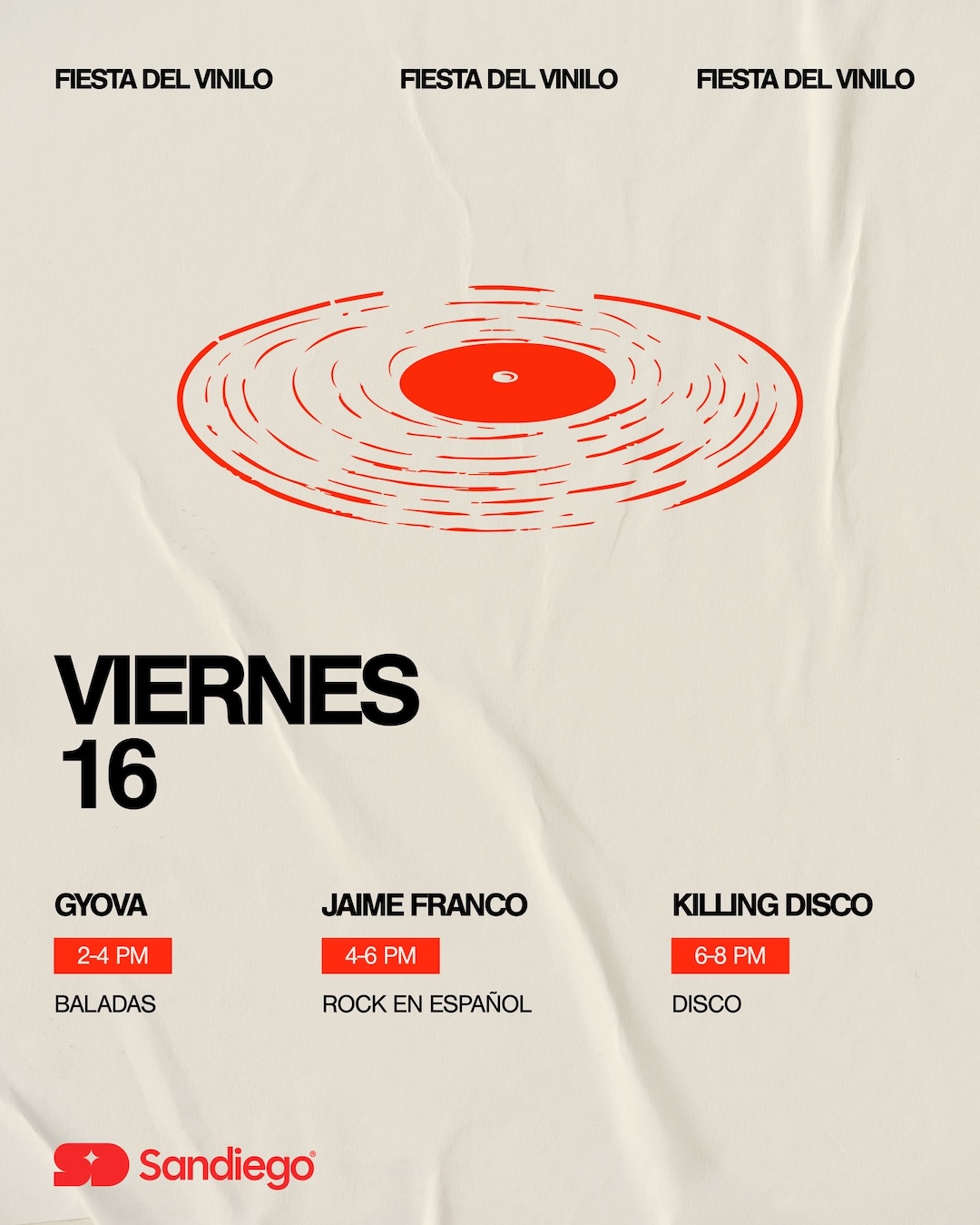 Durante tres días en la Zona Gastrobar La T del Centro Comercial Sandiego, disfruta de venta de vinilos, DJs en vivo y una programación sonora diversa, con ritmos que van desde el rock en español, baladas y salsa hasta latin funk, cumbia y disco.