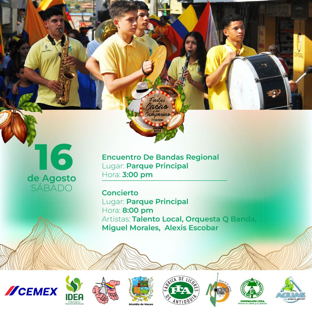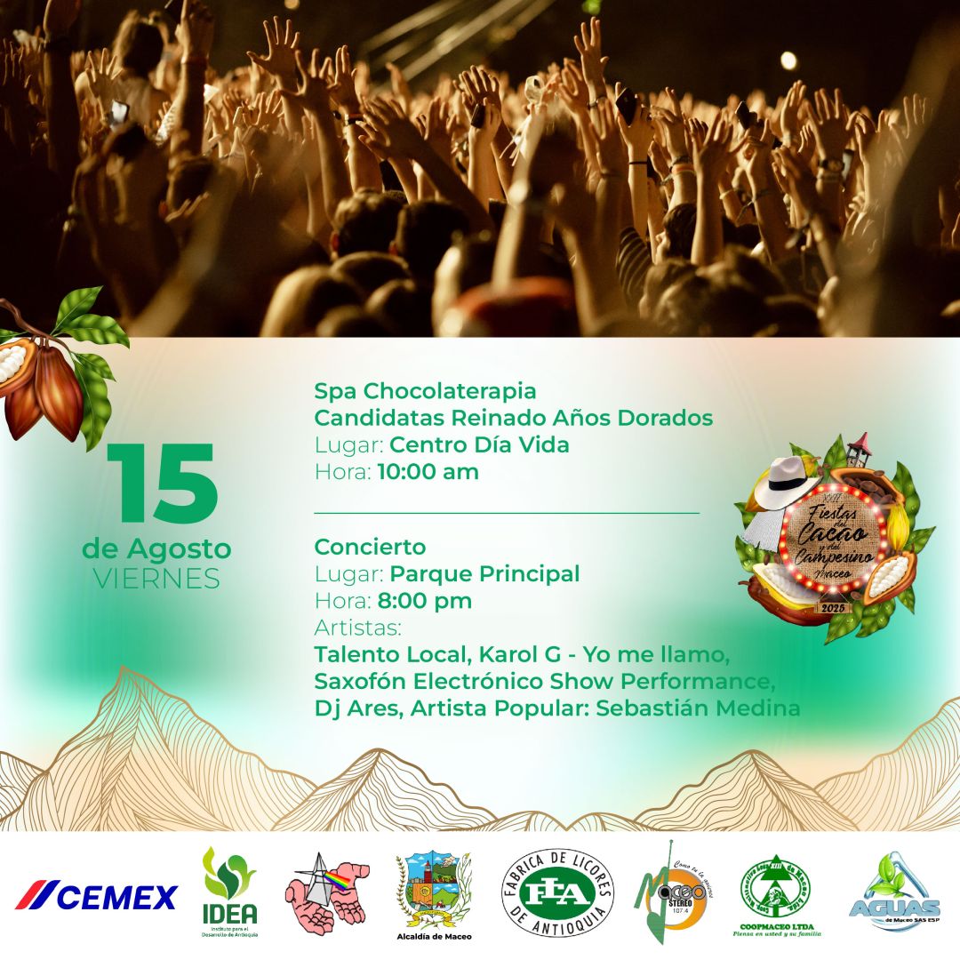 ¡Prepárate para vivir la fiesta más dulce y tradicional del año! Música, cultura, sabor campesino y el mejor cacao del mundo se unen en una celebración que honra nuestras raíces. Maceo te espera con alegría, poncho y sombrero.