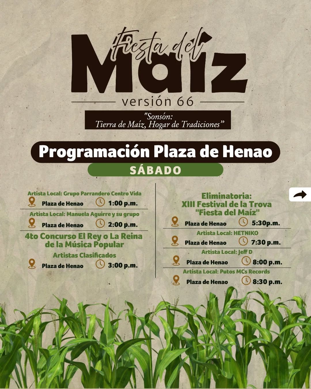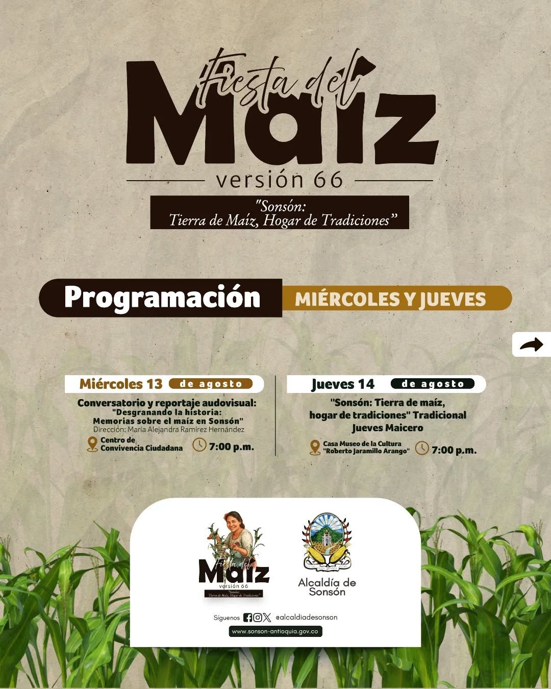 Acompáñanos en la Fiesta del Maíz - Versión 66 en Sonsón, Antioquia. Una experiencia cultural que celebra nuestras raíces, el trabajo del campo y todo lo que representa el maíz en nuestra historia. ¡Nos vemos en Sonsón!
