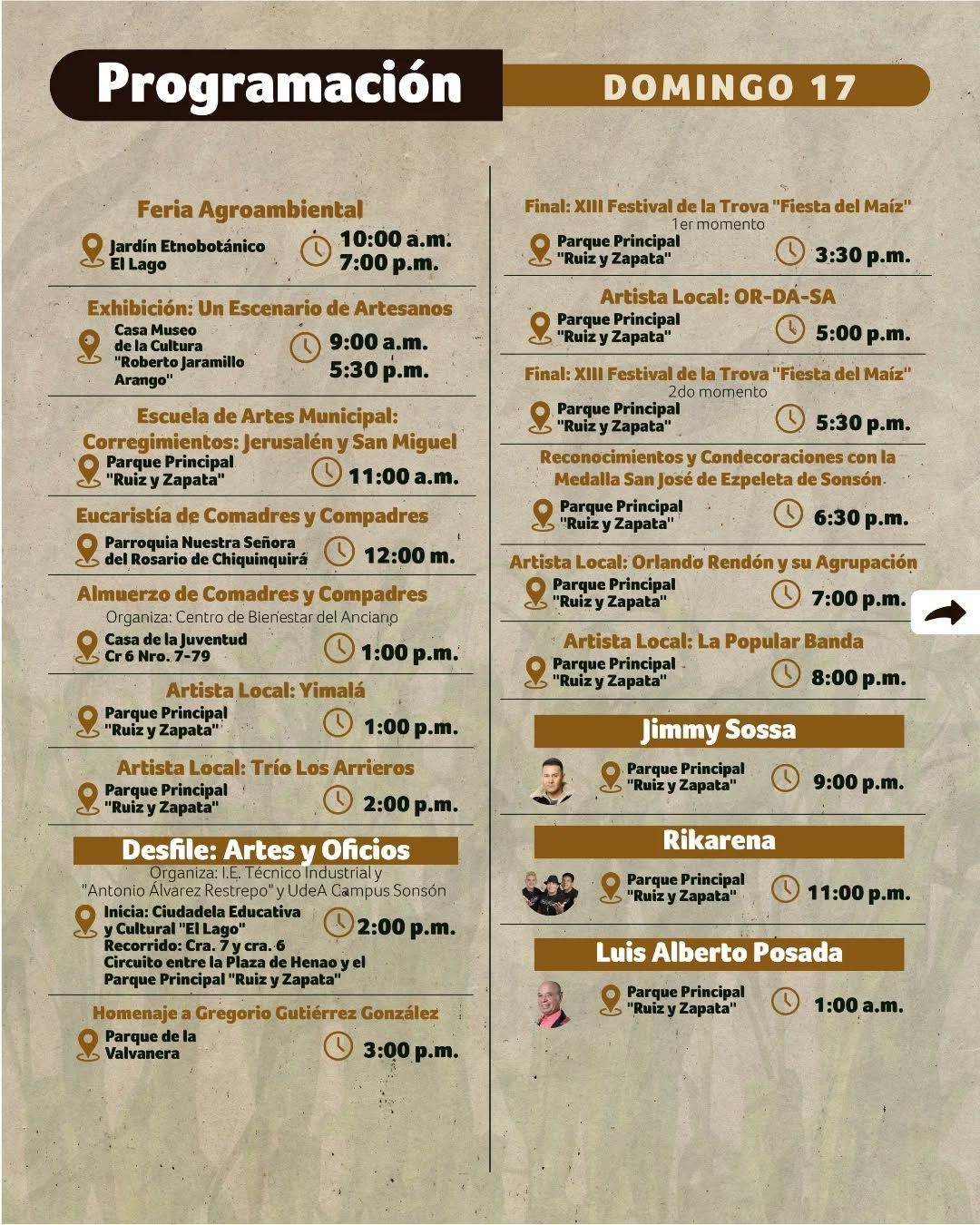Bajo el lema “Sonsón: Tierra de Maíz, Hogar de Tradiciones”, esta fiesta reunirá desfiles típicos, muestras gastronómicas, concursos, música en vivo, danzas folclóricas, arte y una programación llena de actividades para toda la familia.