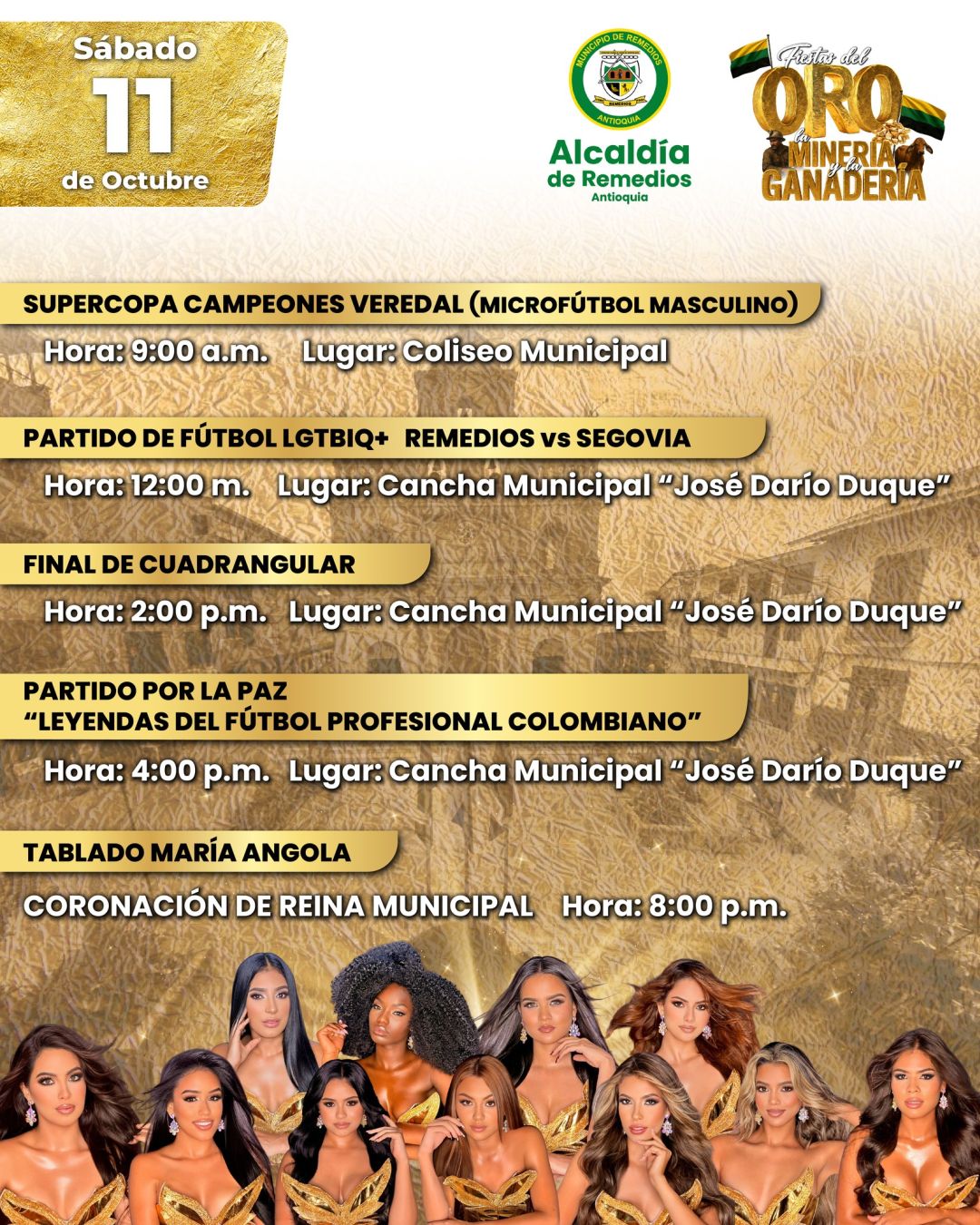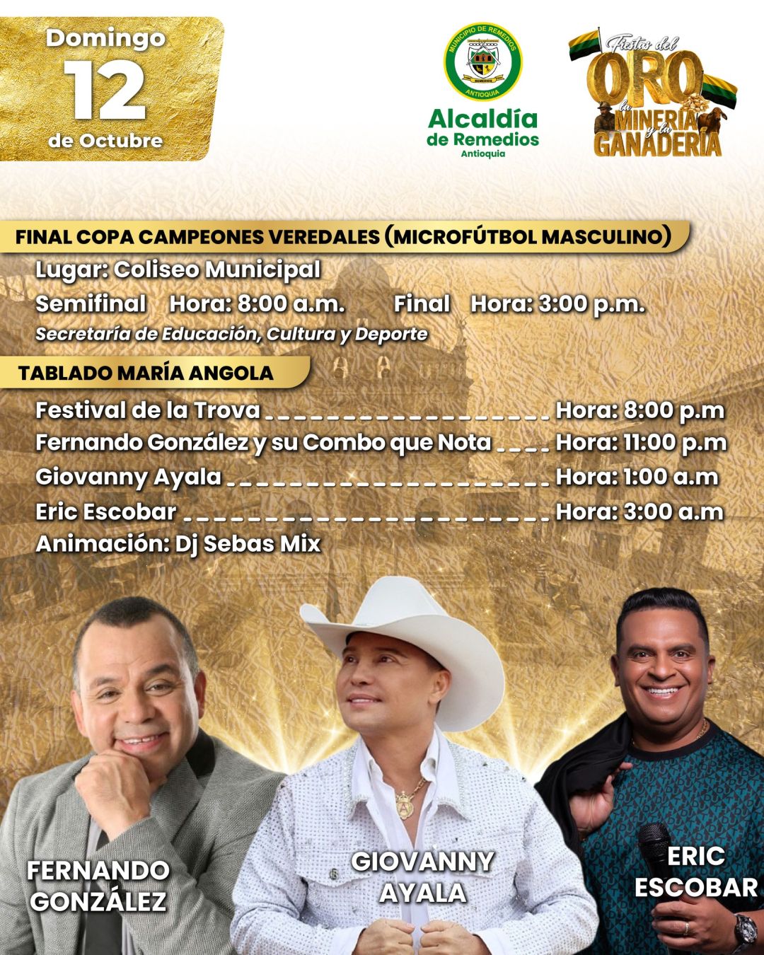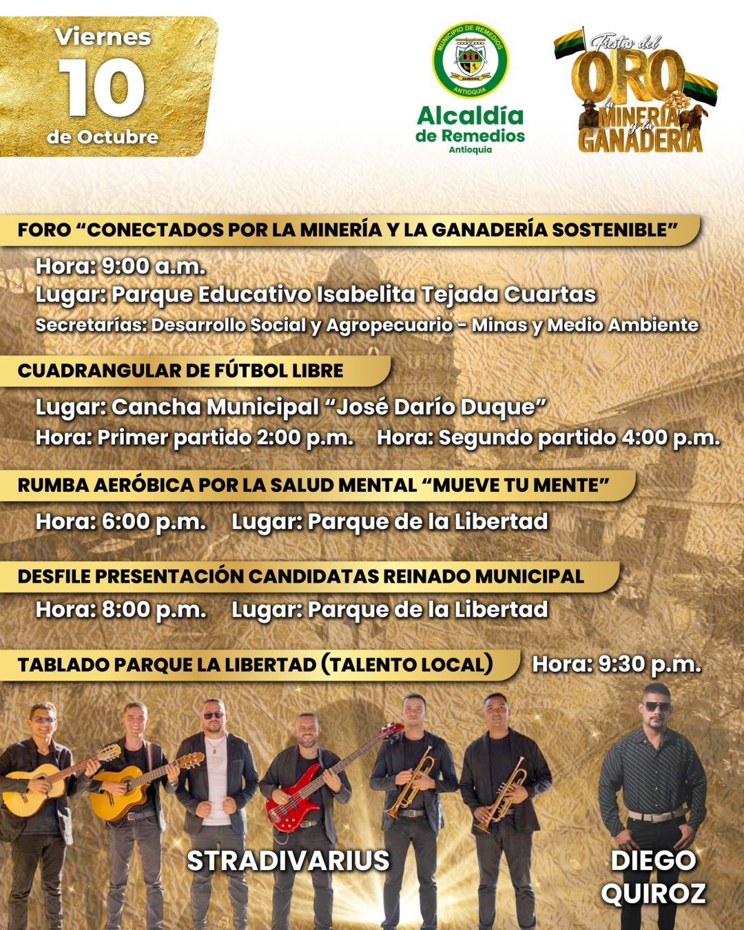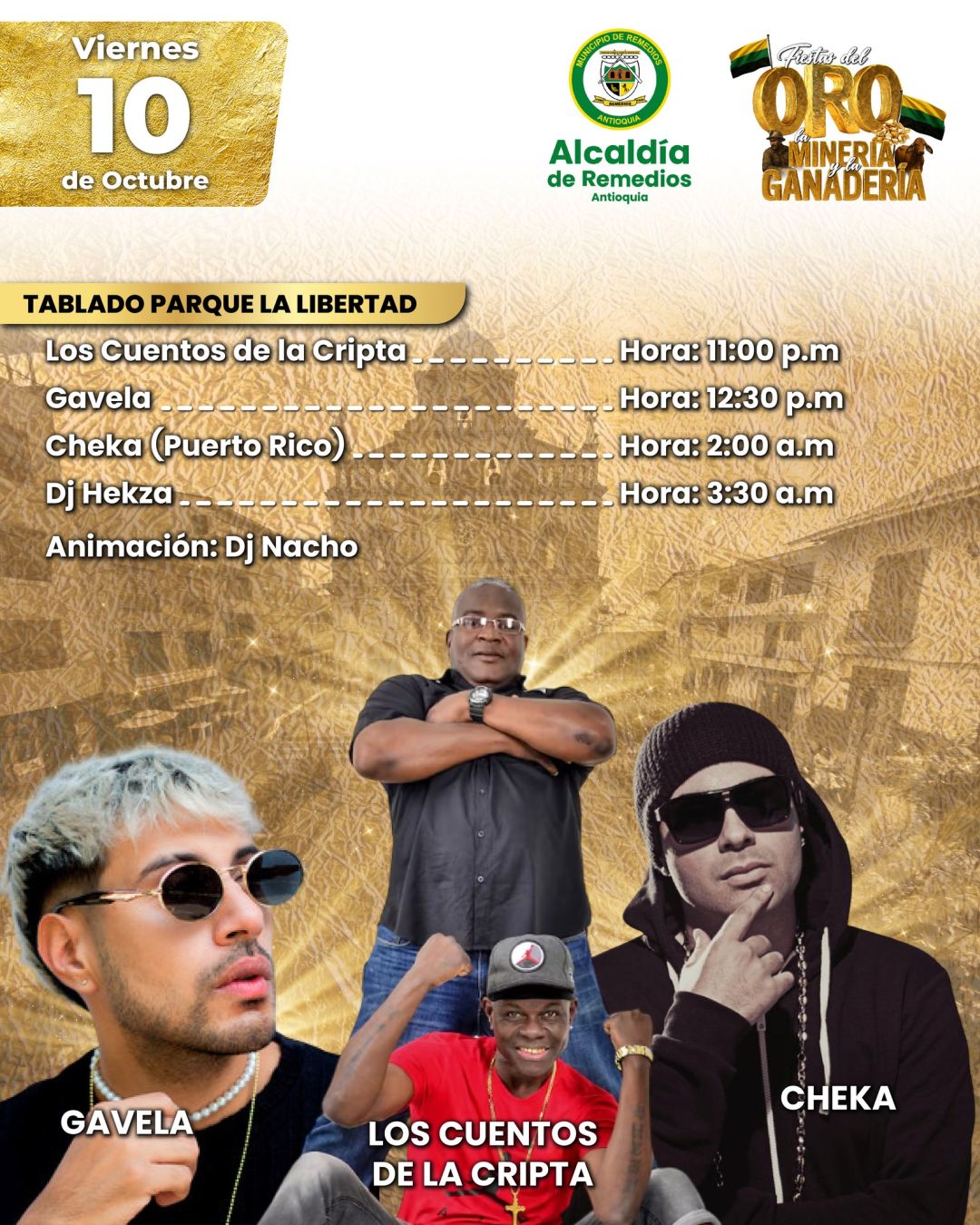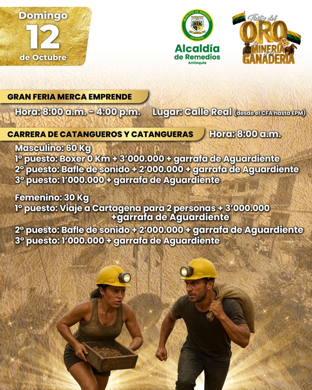 ¡Remedios se llena de orgullo y tradición! Vive una celebración donde el oro, la minería y la ganadería brillan con fuerza. Música, cultura y alegría en un evento que honra nuestras raíces y une a toda la comunidad. ¡No te lo puedes perder!