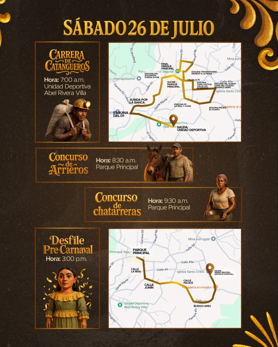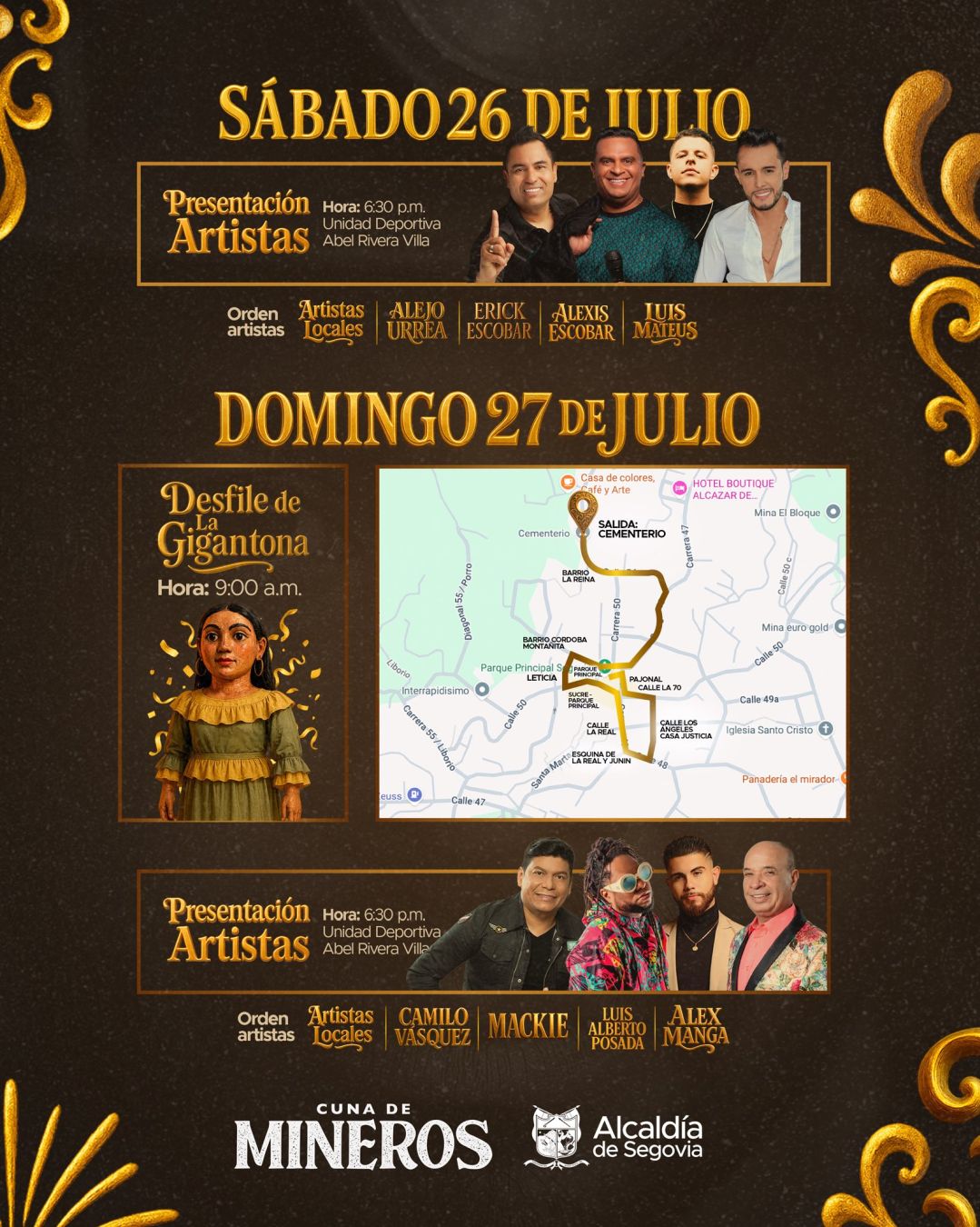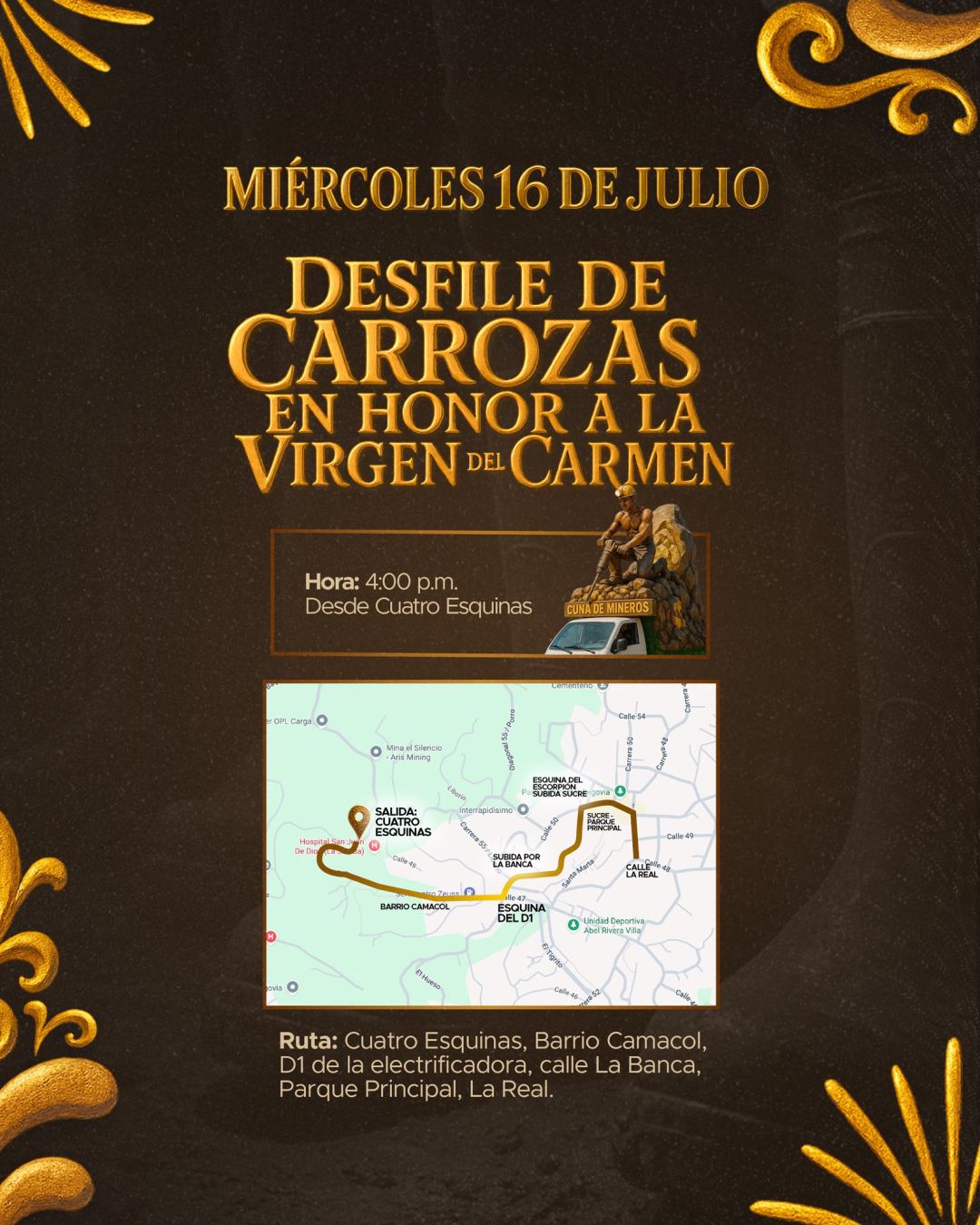 ¡Segovia vibra con tradición, cultura y orgullo minero! Vive las Fiestas Patronales de la Virgen del Carmen y del Oro y la Minería, una celebración llena de música, color y alegría en la tierra donde el oro también vive en su gente.