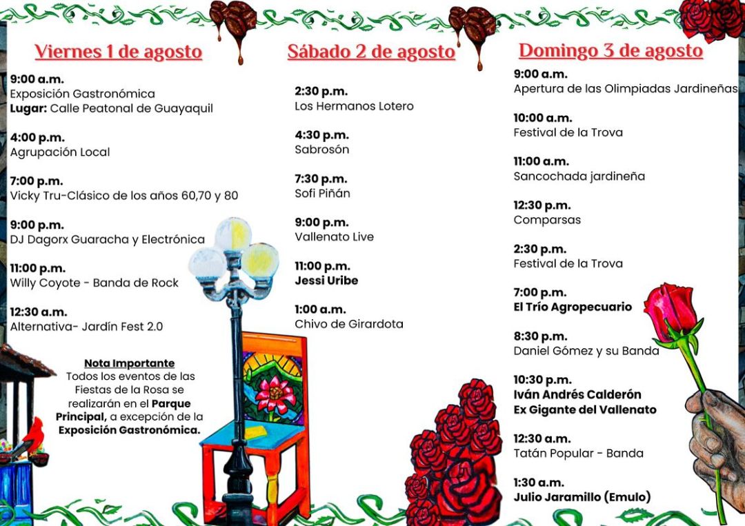 Jardín, la Villa Encantada, se viste de flores, tradición y alegría para celebrar las XXVI Fiestas de la Rosa, del 1 al 3 de agosto de 2025. Este mágico pueblo patrimonio abre sus puertas para recibir a visitantes y locales con una programación llena de cultura, música, arte, tradición campesina y el inconfundible aroma de la rosa.