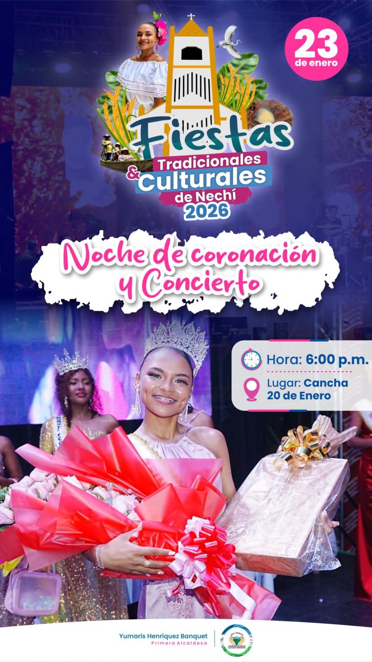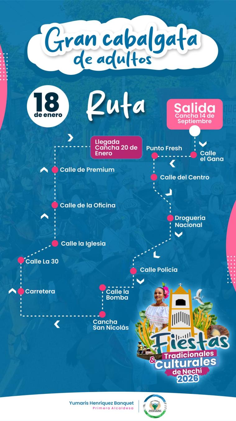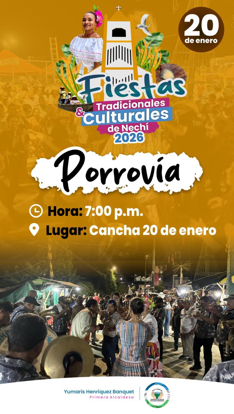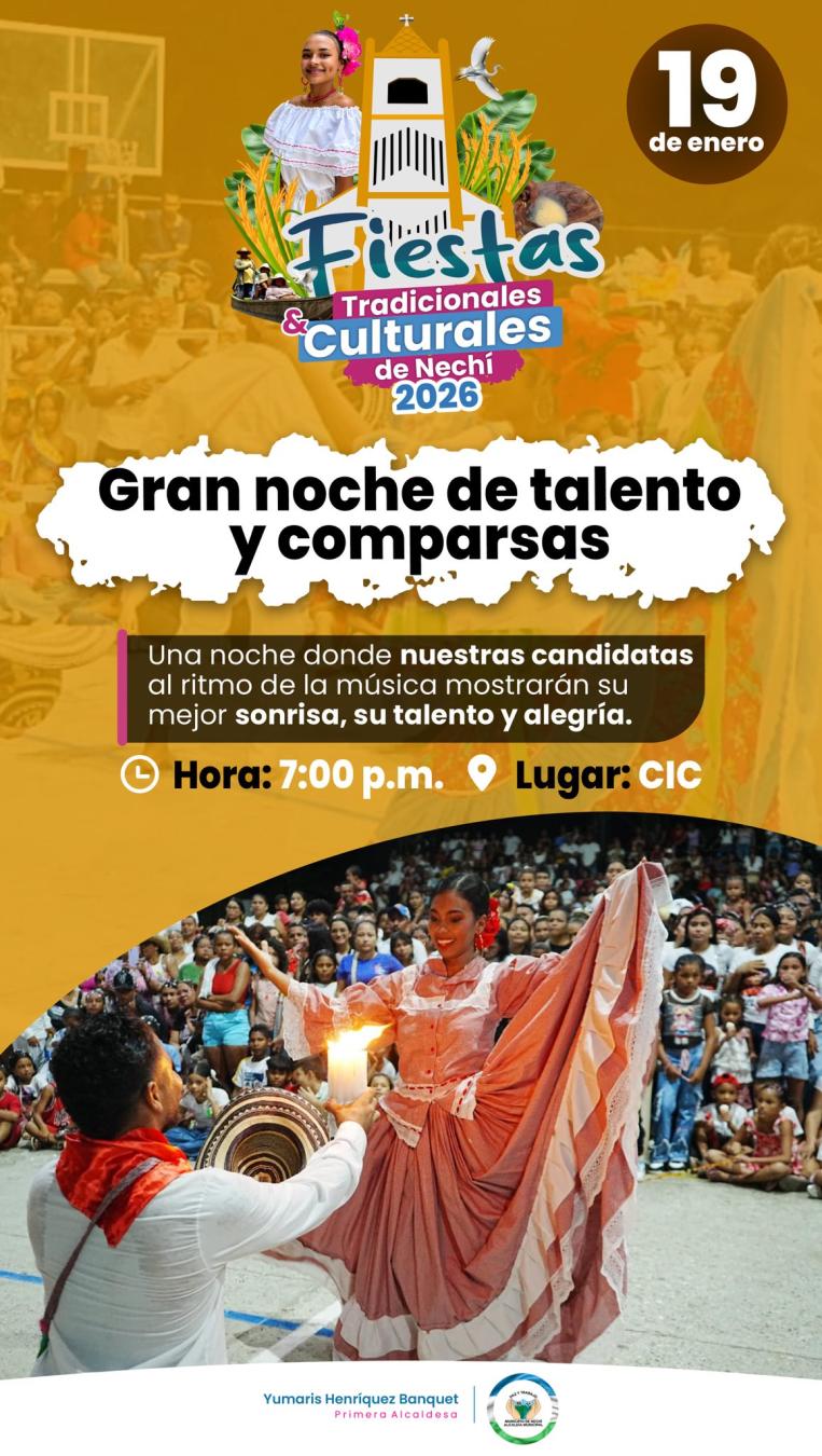¡La alegría vuelve a las calles de Nechí! Del 16 al 24 de enero, vive las Fiestas Tradicionales y Culturales de Nechí 2026 con una programación llena de tradición, música, sabor y arte popular. Cada día será una celebración única de nuestra identidad cultural: ciclismo, boxeo, festivales gastronómicos, cabalgatas, porrovía, carrozas, conciertos, noche de talentos y mucho más.