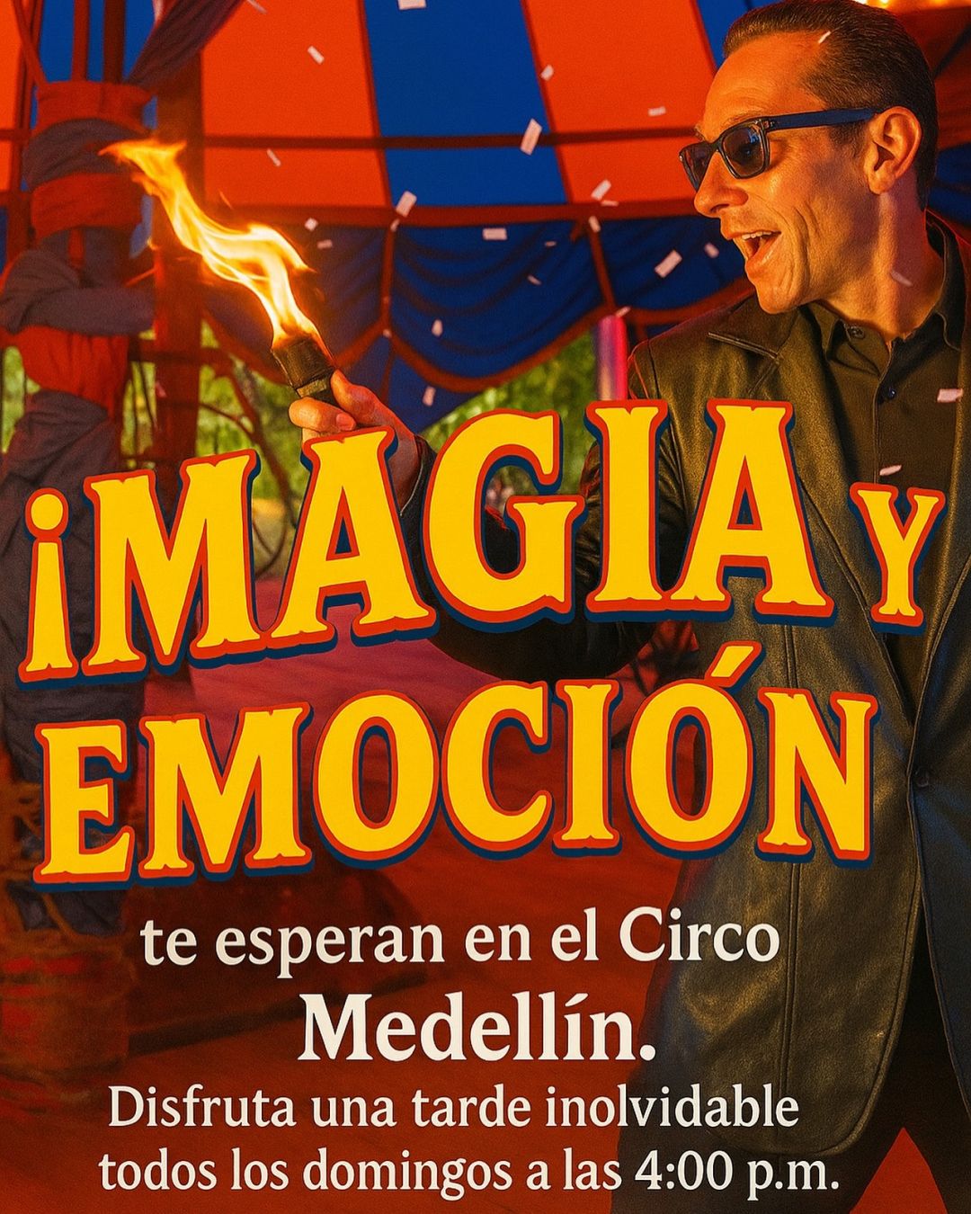 Prepárate para una experiencia mágica que encenderá tus sentidos. El Circo Medellín te espera con un espectáculo lleno de fuego, acrobacias, risas y emoción. Vive la magia del circo cada domingo a las 4:00 p.m. en un show ideal para disfrutar en familia o con amigos. ¡No te lo puedes perder!