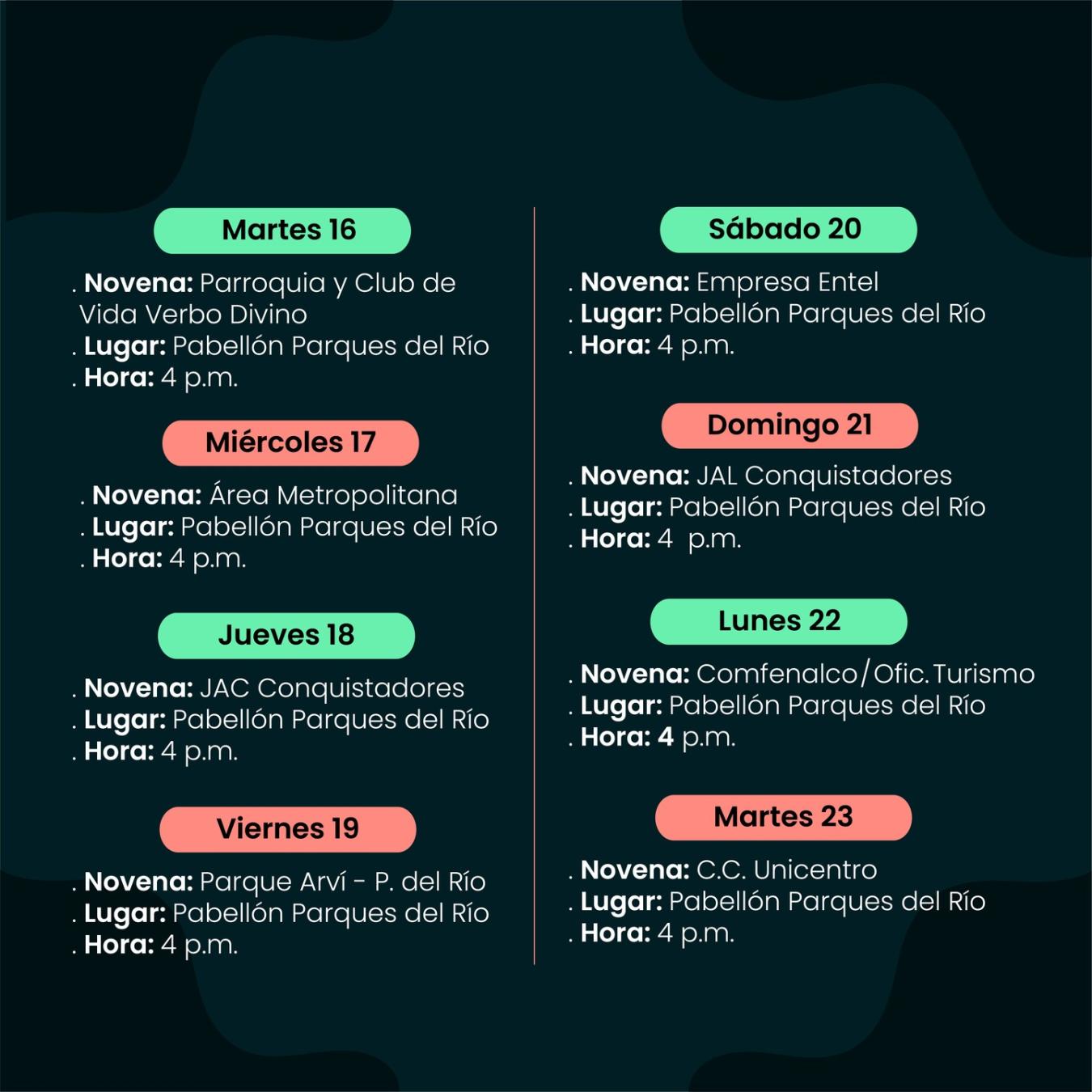 Cada día, una entidad diferente nos acompañará para guiar la novena, con momentos que combinan la espiritualidad, la cultura y el encuentro comunitario.