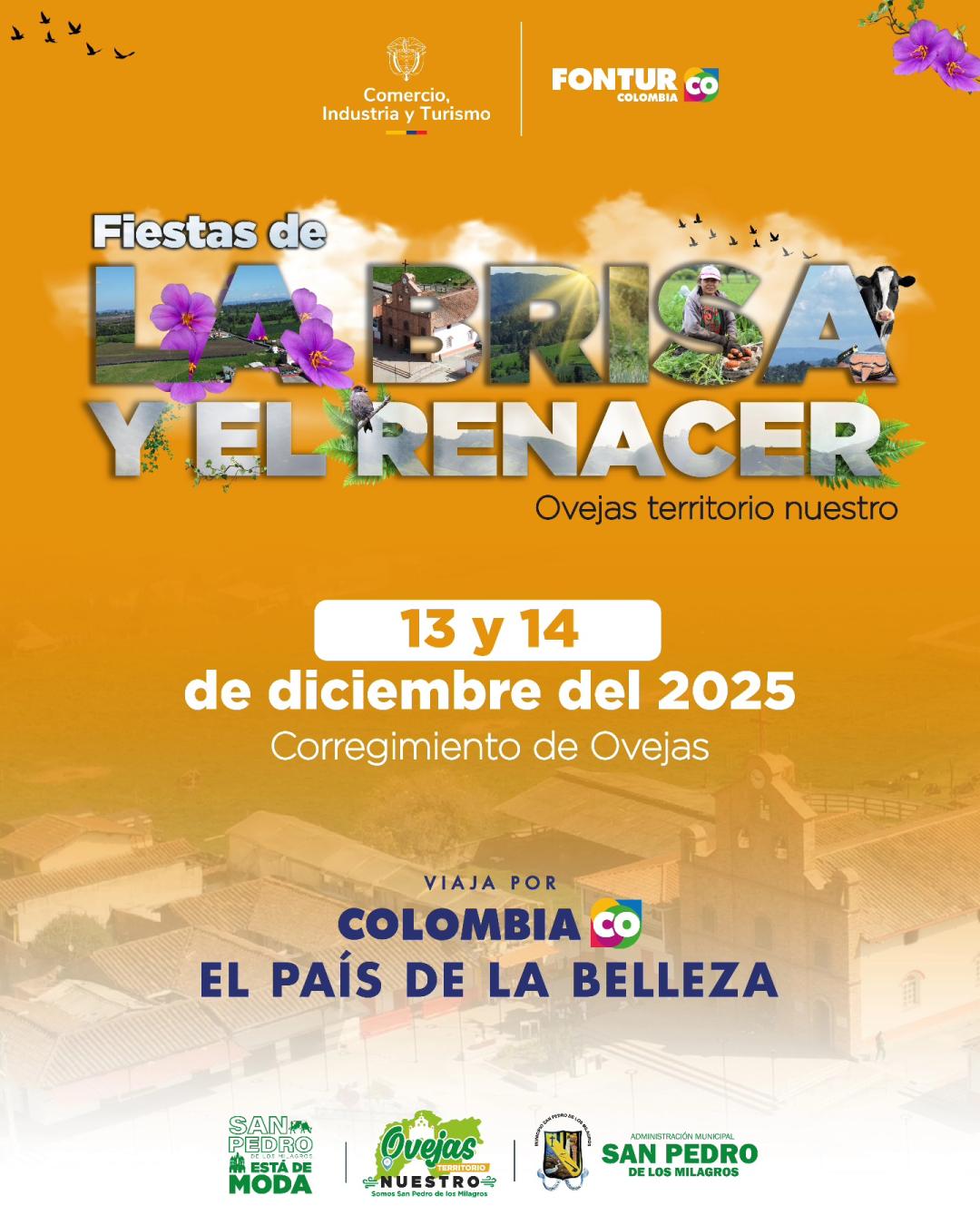 Prepárate para las Fiestas de la Brisa y el Renacer en Ovejas: dos días de ritmos ancestrales, sabores auténticos y arte popular que despertará tus sentidos. Un homenaje a nuestras raíces y la esperanza que nos une. ¡Vive la magia! ¡No faltes!