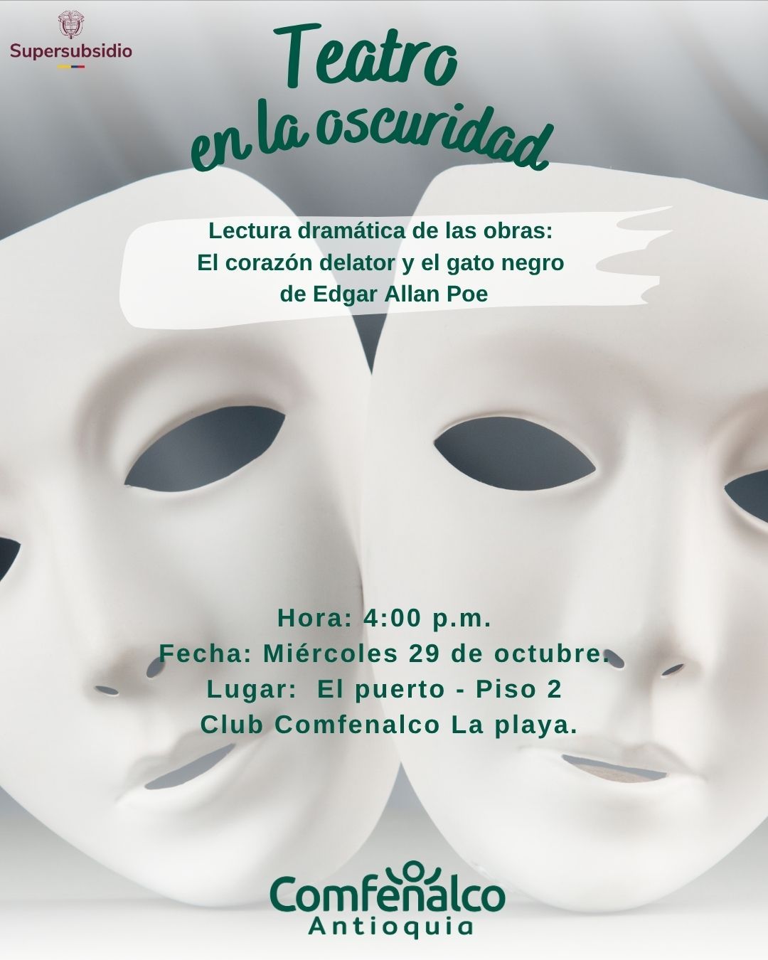 Apaga la luz y deja que la imaginación te guíe. En el teatro en la oscuridad, las palabras de Edgar Allan Poe despiertan el miedo, el misterio y la emoción. Una experiencia sensorial donde cada susurro revela lo que habita en la sombra.