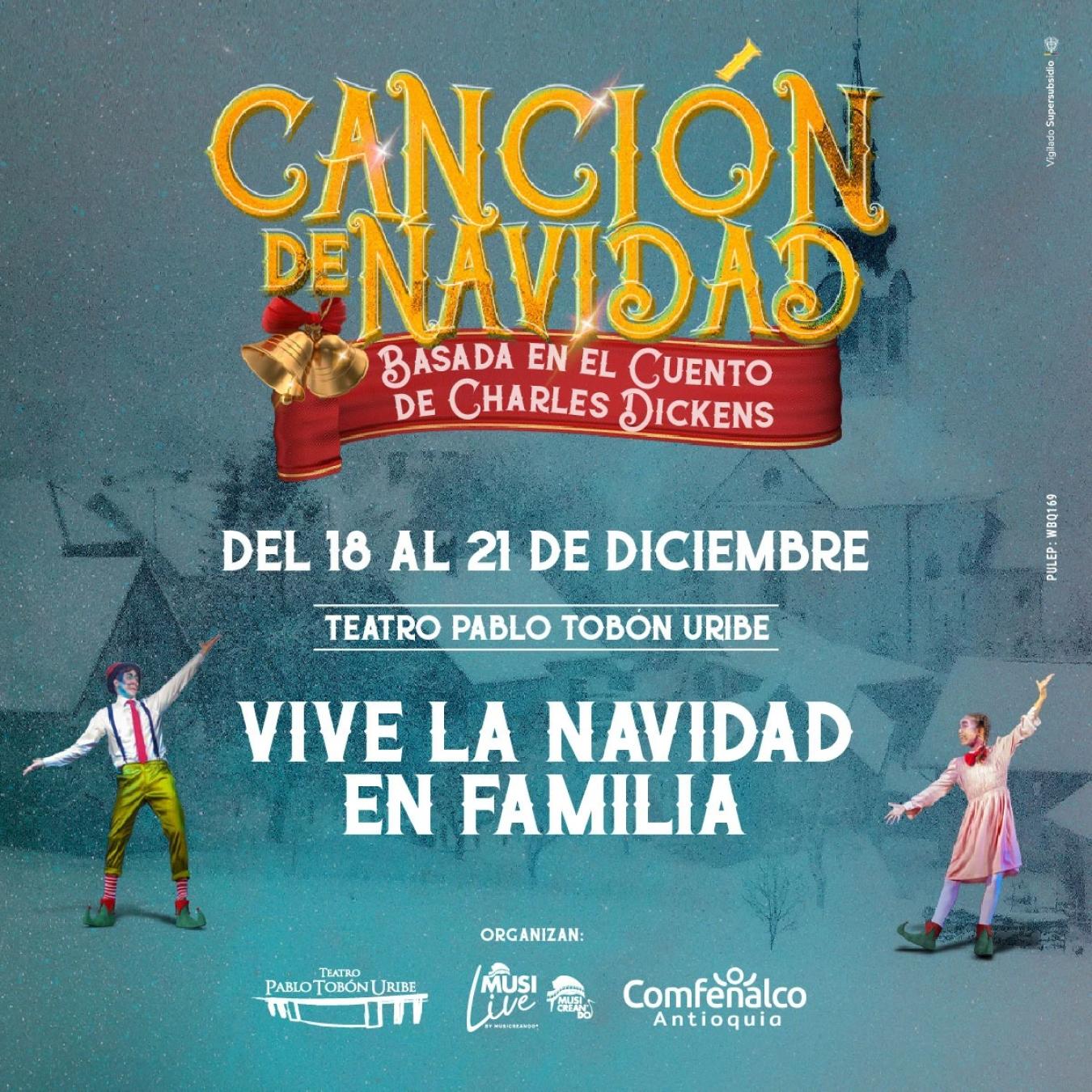 Sumérgete en el clásico cuento de Charles Dickens, Canción de Navidad. Una emotiva obra de teatro basada en la historia de Ebenezer Scrooge, perfecta para vivir la magia navideña en familia. ¡Disfruta de este espectáculo en el Teatro Pablo Tobón