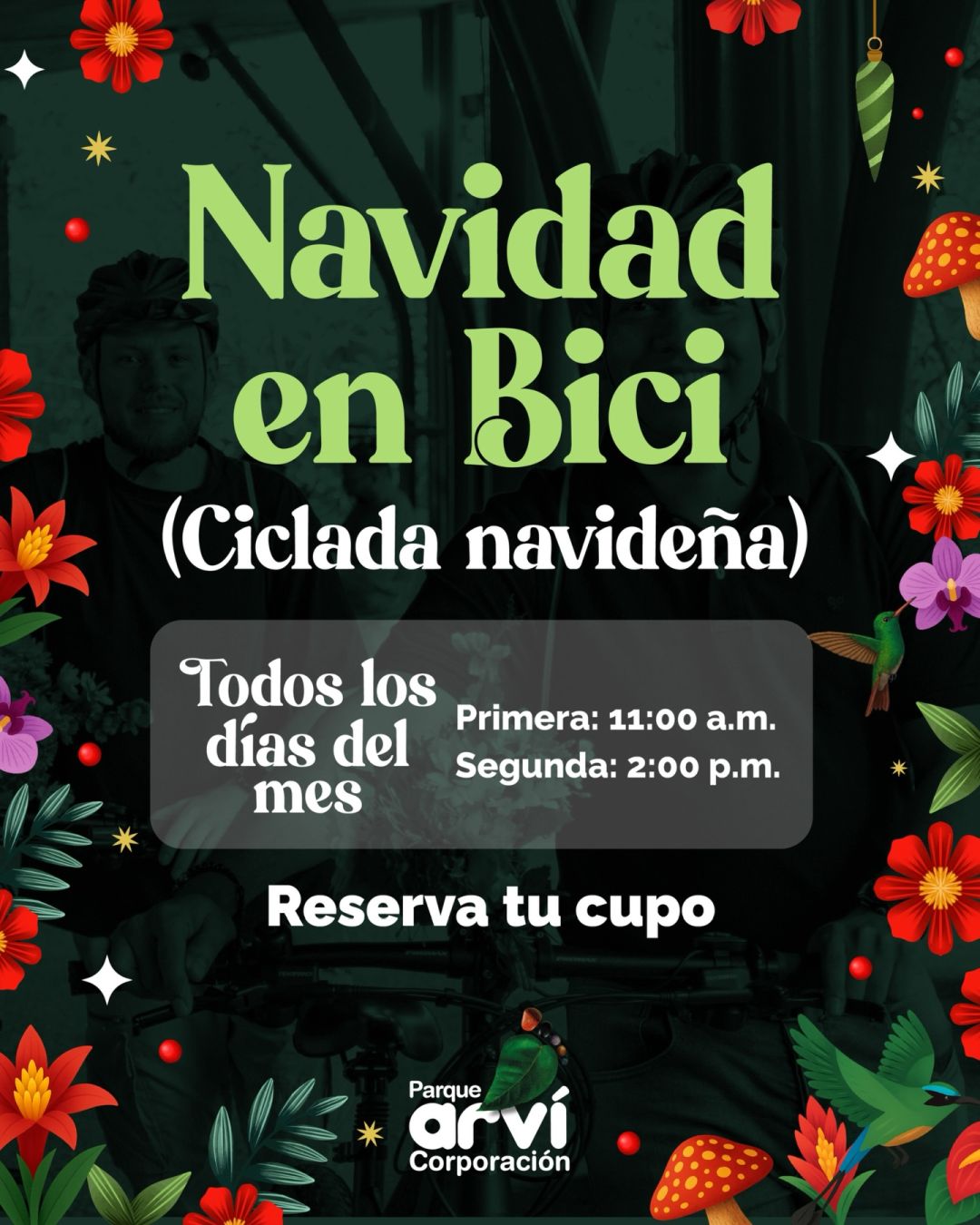 Vive la magia de la Navidad pedaleando entre árboles y senderos llenos de naturaleza. Una experiencia diferente, llena de aire puro, movimiento y espíritu navideño. Prepárate para una ciclada inolvidable en el corazón del bosque.