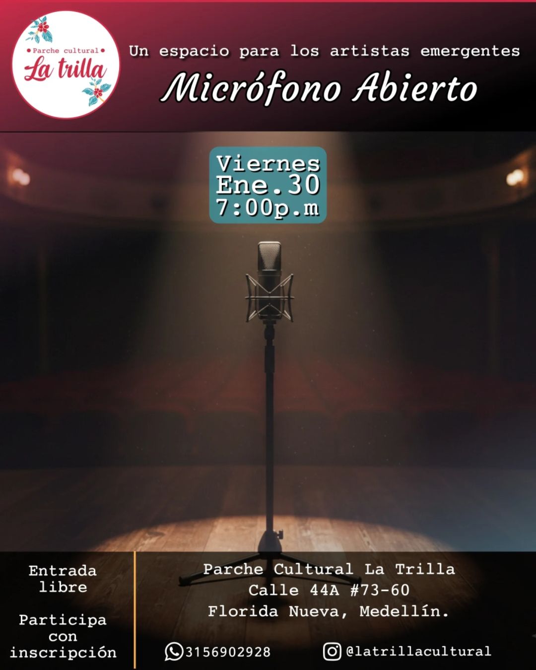 Una tarima, un micro y todo por decir. Música, poesía, cuentos y comedia se toman la noche en La Trilla. Ven a mostrar tu arte o a descubrir talentos que sorprenden. El parche está servido... ¿te lo vas a perder?
