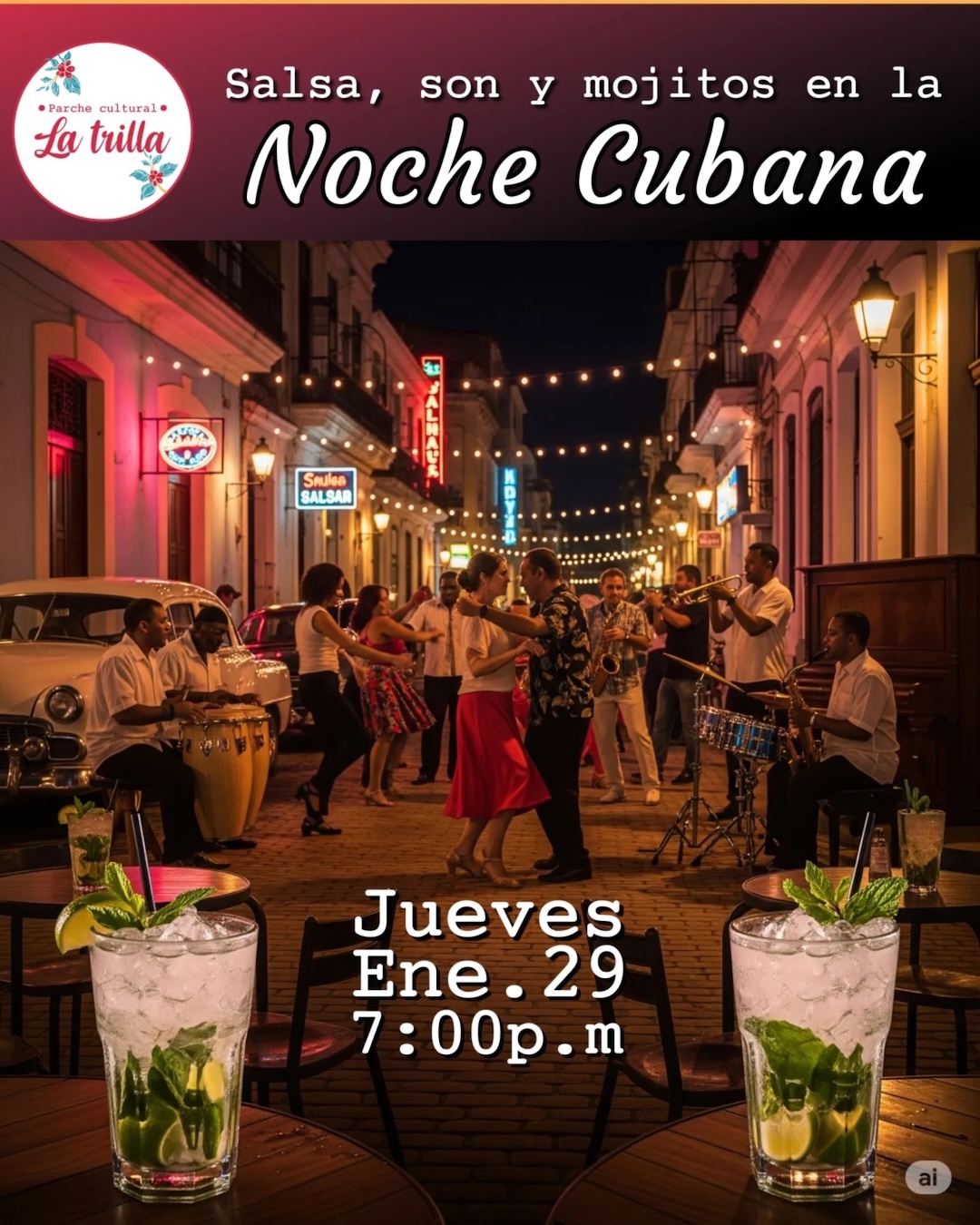 ¡Prepárate para una noche con sabor a Cuba! Mojitos, música en vivo y son cubano te esperan en La Trilla. Aprende a bailar, goza con cada paso y deja que el ritmo caribeño se apodere de tu cuerpo. ¡Azúcar pa’l alma y candela pa’ los pies!