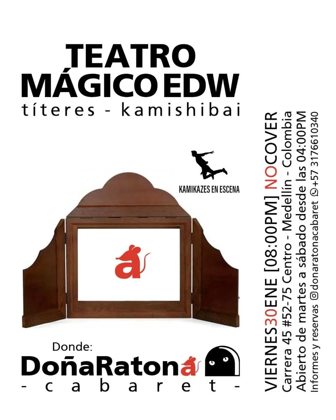 Descubre un universo donde los títeres y el kamishibai dan vida a historias mágicas que despiertan la imaginación. Teatro Mágico EDW llega para sorprenderte con un espectáculo lleno de encanto, poesía visual y emociones inesperadas.