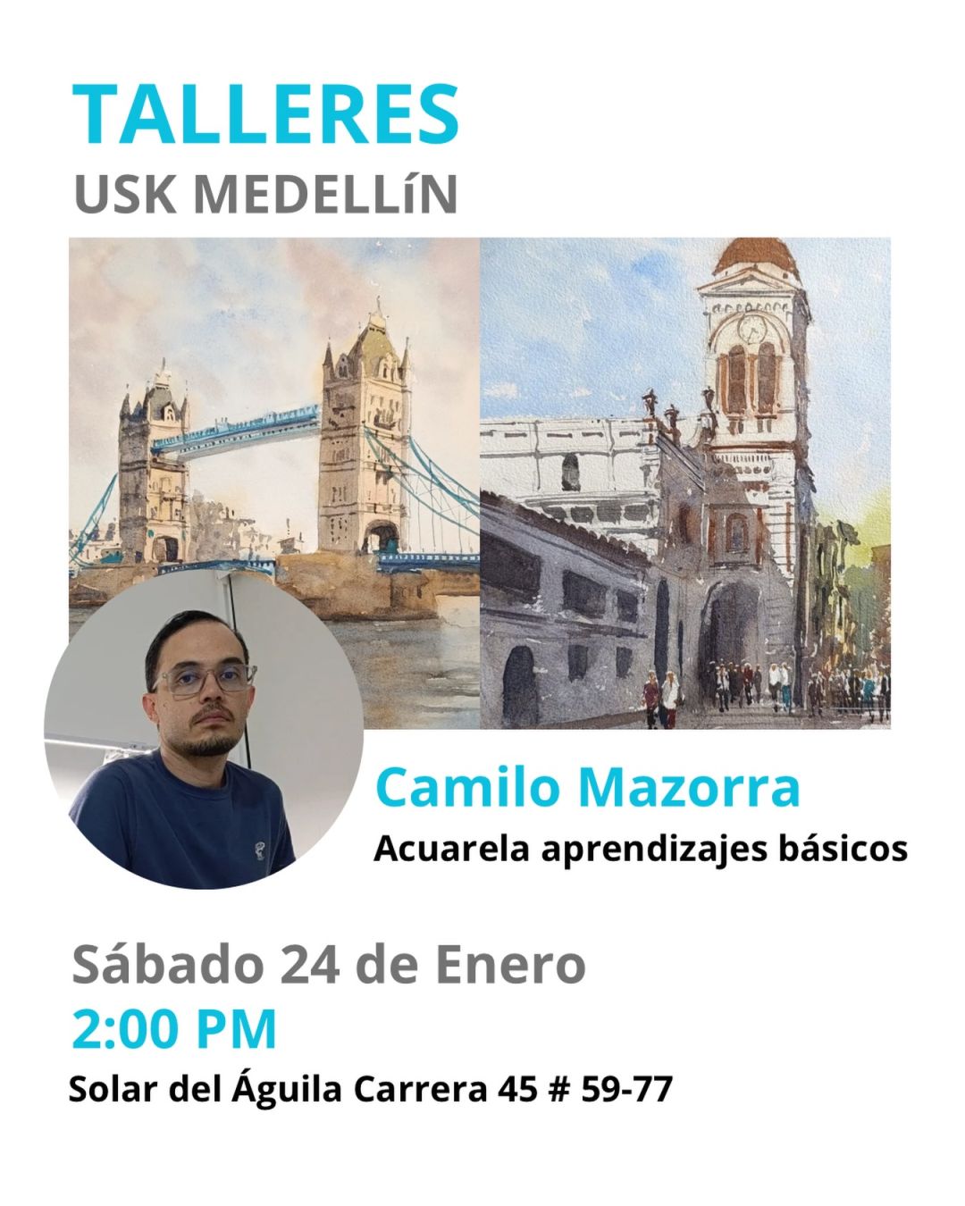 ¿Quieres aprender acuarela desde cero? Vive una tarde creativa con el taller gratuito de Camilo Mazorra y únete a la dibujada suave en un ambiente lleno de arte, color y comunidad. Inspírate, pinta y crece en tu proceso creativo. ¡Te esperamos!