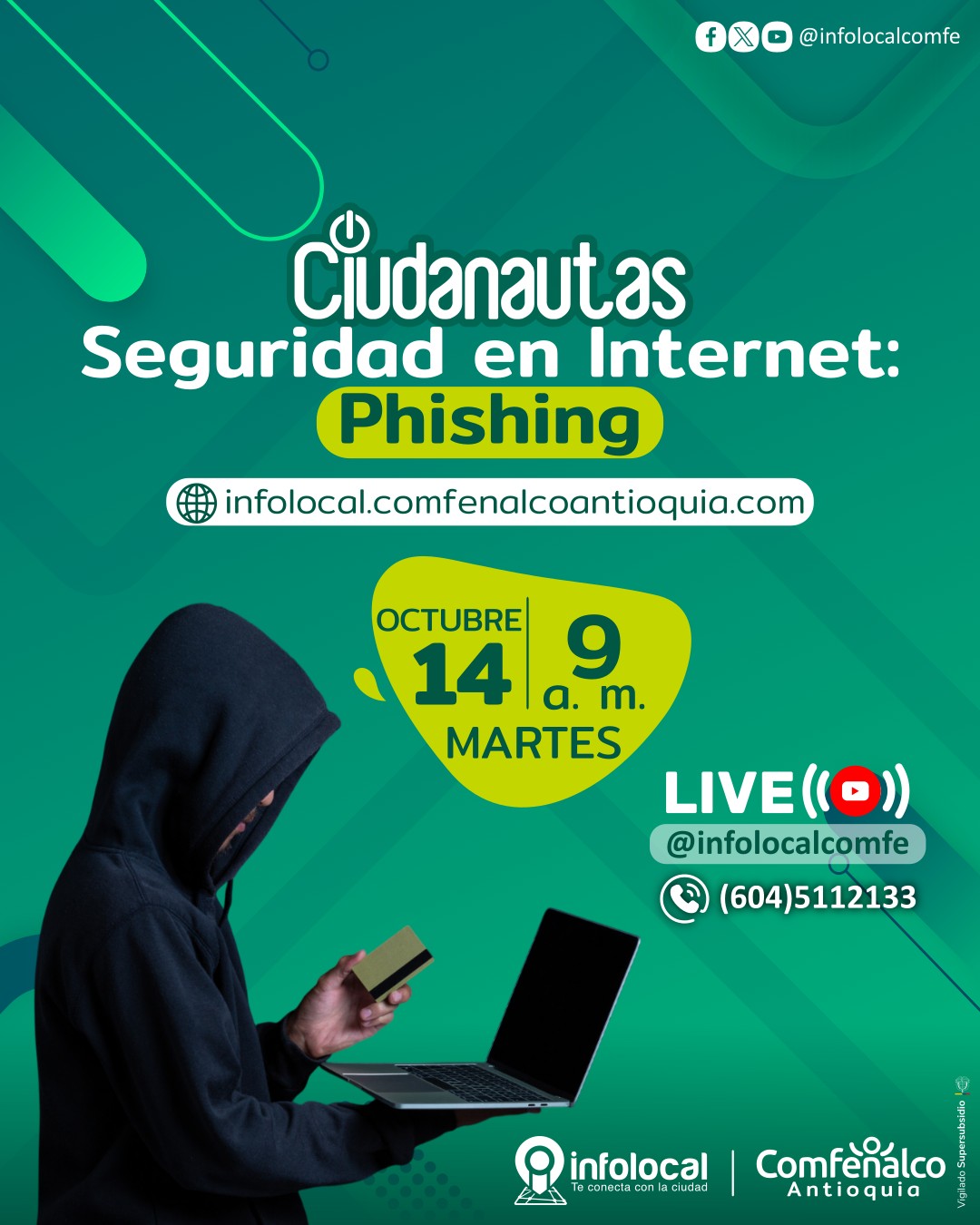 Medellín, Antioquia14 Octubre 2025 , 09:00 AM hasta 10:00 AM09:00 AM - 10:00 AMTipo: TallerAprende a proteger tu información en línea. En este taller virtual descubrirás cómo identificar correos, mensajes y sitios falsos que buscan engañarte. Conoce las claves para navegar con seguridad y confianza en el mundo digital.